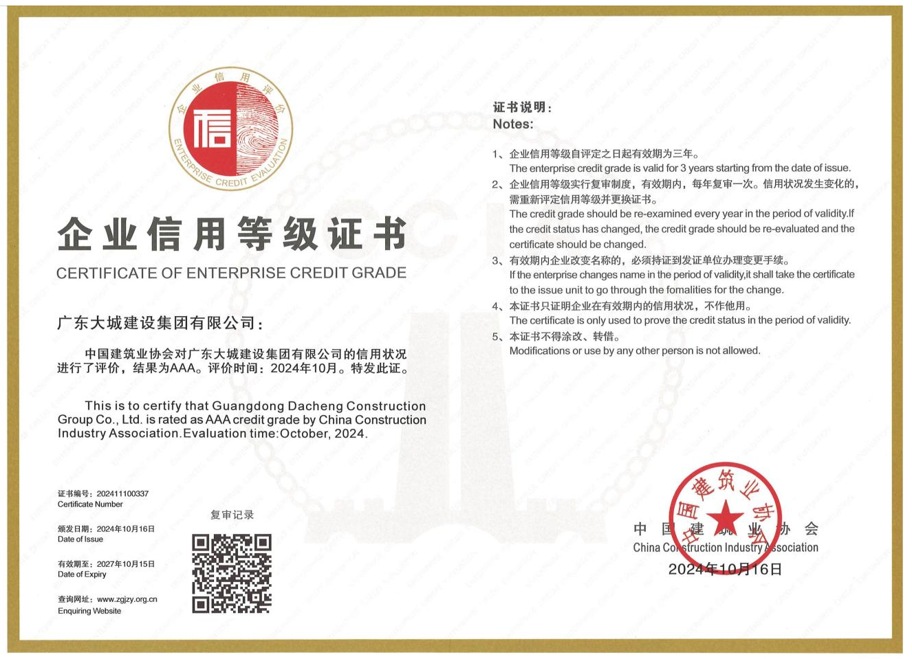我司榮獲全國“建筑業(yè)AAA級(jí)信用企業(yè)”稱號(hào)
